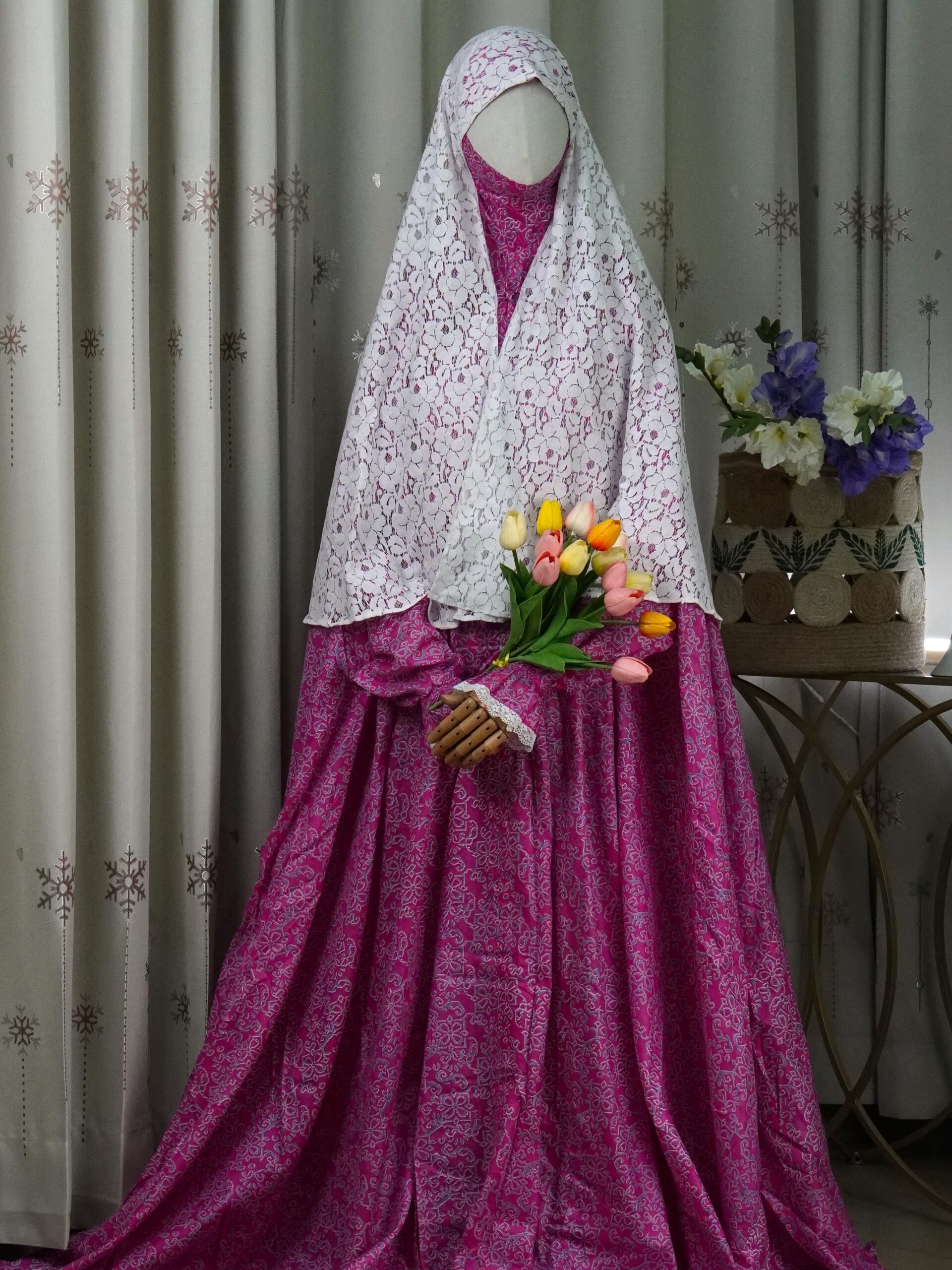 দেশের যে গরম আবহাওয়া তাতে দেশি ভয়েল প্রিমিয়াম কোয়ালিটি ফেব্রিক্সগুলো সুইটেবল। এই কাপড়গুলো নরম ও পাতলা। আমরা ৪ বছর ধরে কটন ফেব্রিক্স নিয়ে কাজ করি আর সলাতে কাপড় কেমন হওয়া উচিত তাও জানি। কাপড় এমন হওয়া যাবে না যেন স্কীন কালার বোঝা যায়/ সী থ্রু হয়। এজন্য একেবারে সাদা সুতী কাপড় বাদ দিতে হয়। আমরা প্রিন্টগুলো এভাবে বাছাই করি যেন সলাতের শর্তগুলো ওয়েল ম্যানেজ হয় । ঘন প্রিন্ট/ ফুল ছাপার কাপড় এক্ষেত্রে একদম সেরা। কিন্তু আমার-আপনার রুহানী ডাক তো সাদার দিকে! এজন্য সাদা, একদম লাইট ওয়েট লেইস ইউজ করার কথা মাথায় আসে। ক্লীন করা ইজি, পরলে গরম ভাব হবে না, এক্সট্রা কিছু মাথায় আছে মনেই হবে না। দারুণ না?