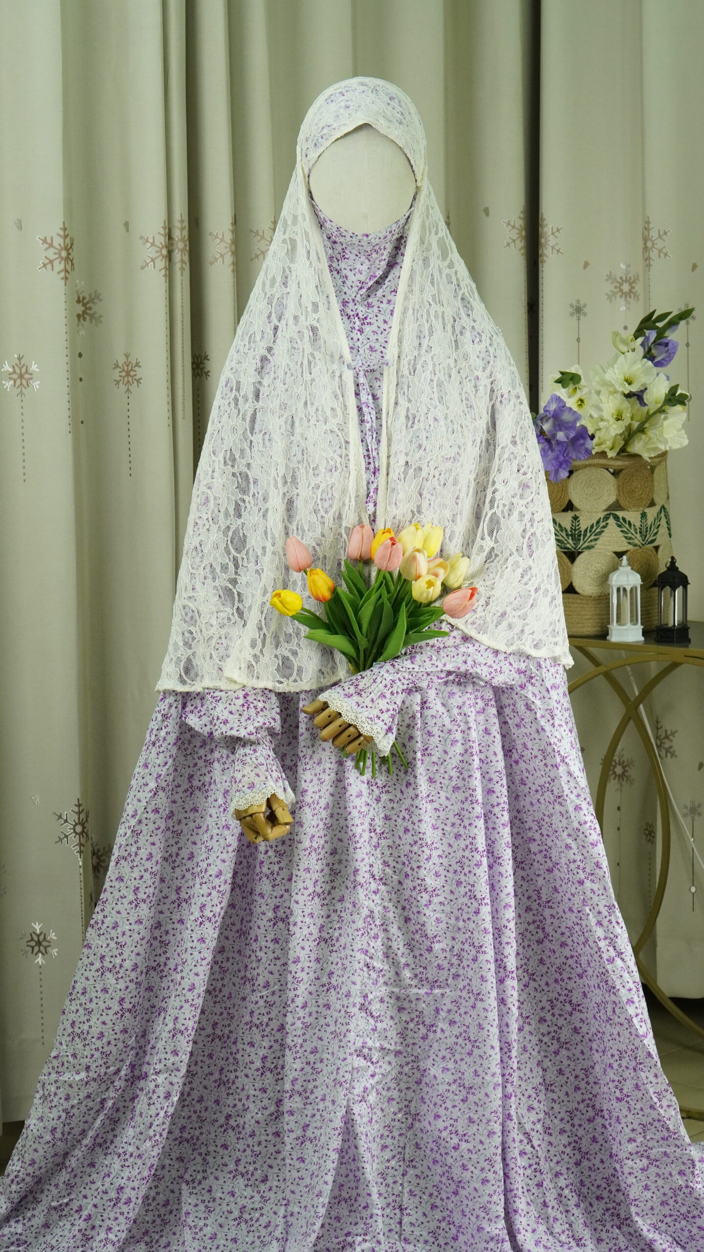খিমারের হাতায় ইলাস্টিক এড করা আছে যেন সলাতে কবজি উন্মুক্ত হয়ে না যায়। একটি সুন্দর লেইস একে আরও বিউটিফাই করেছে।